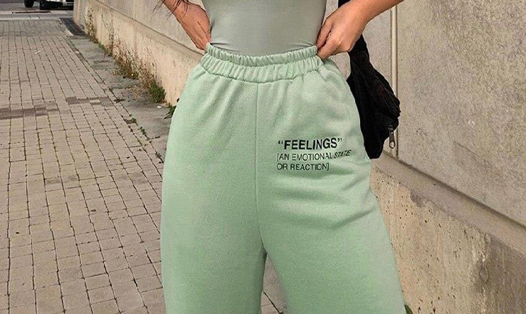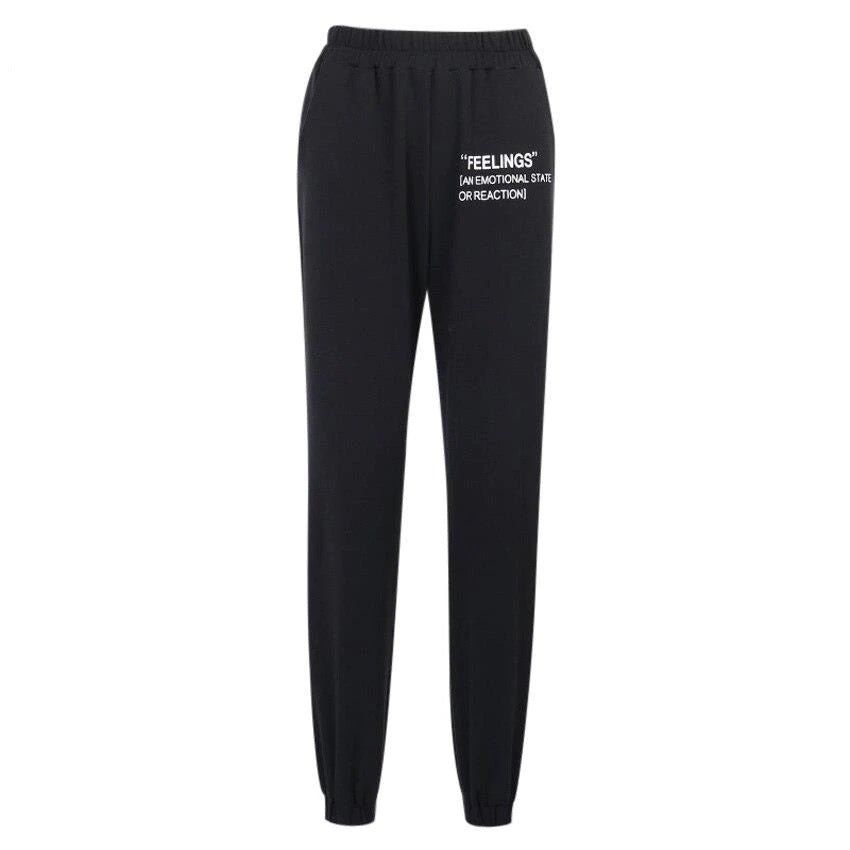 "Feelings" Printed Sweatpants. With elastic waist and pockets. Fits true to size.
