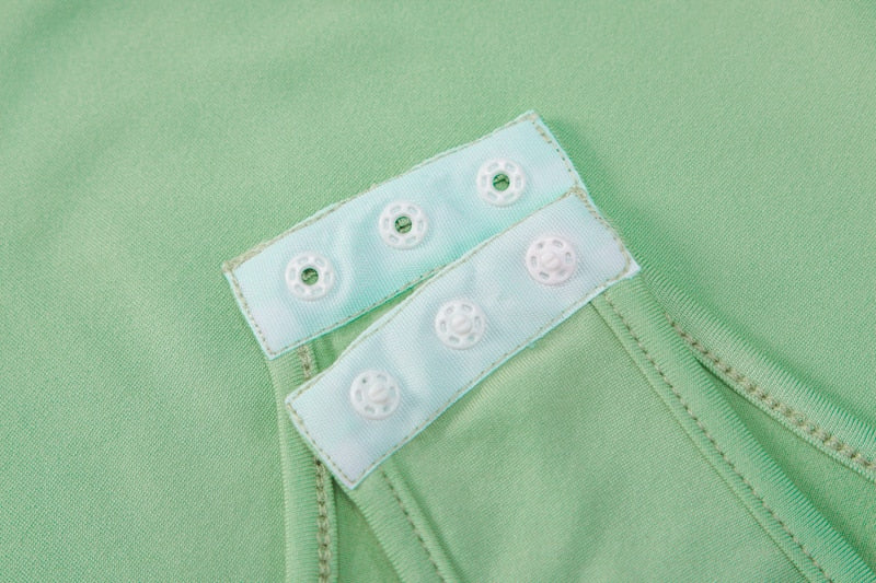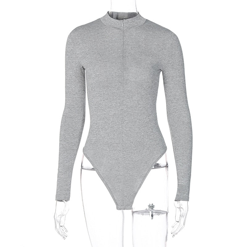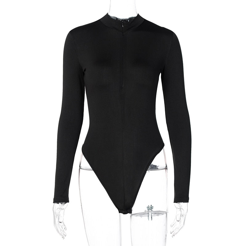 Stretchy long sleeve bodysuit.  With front zipper and 3 snap button closure.  Can be worn zipped or unzipped.  Fits true to size.