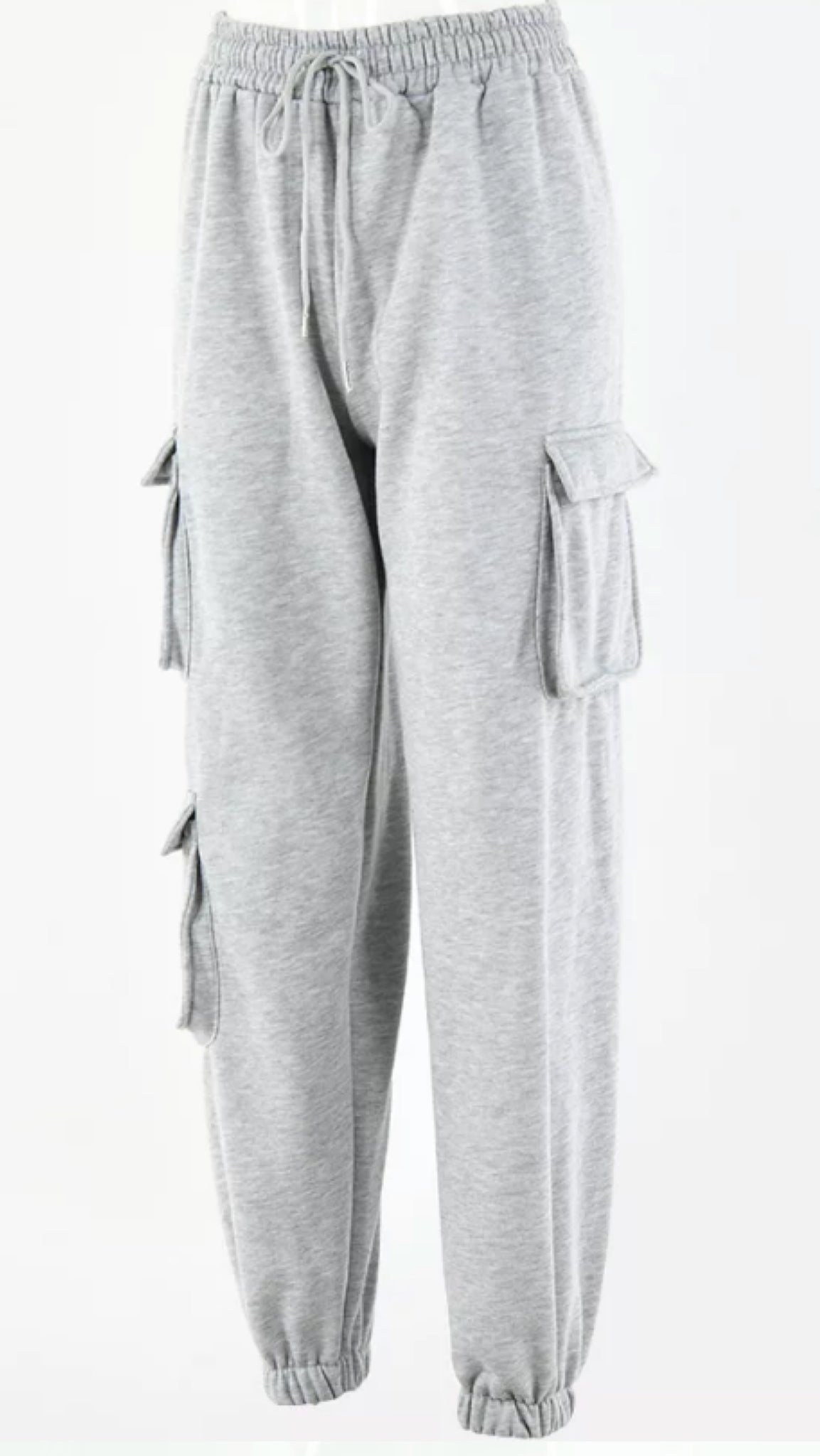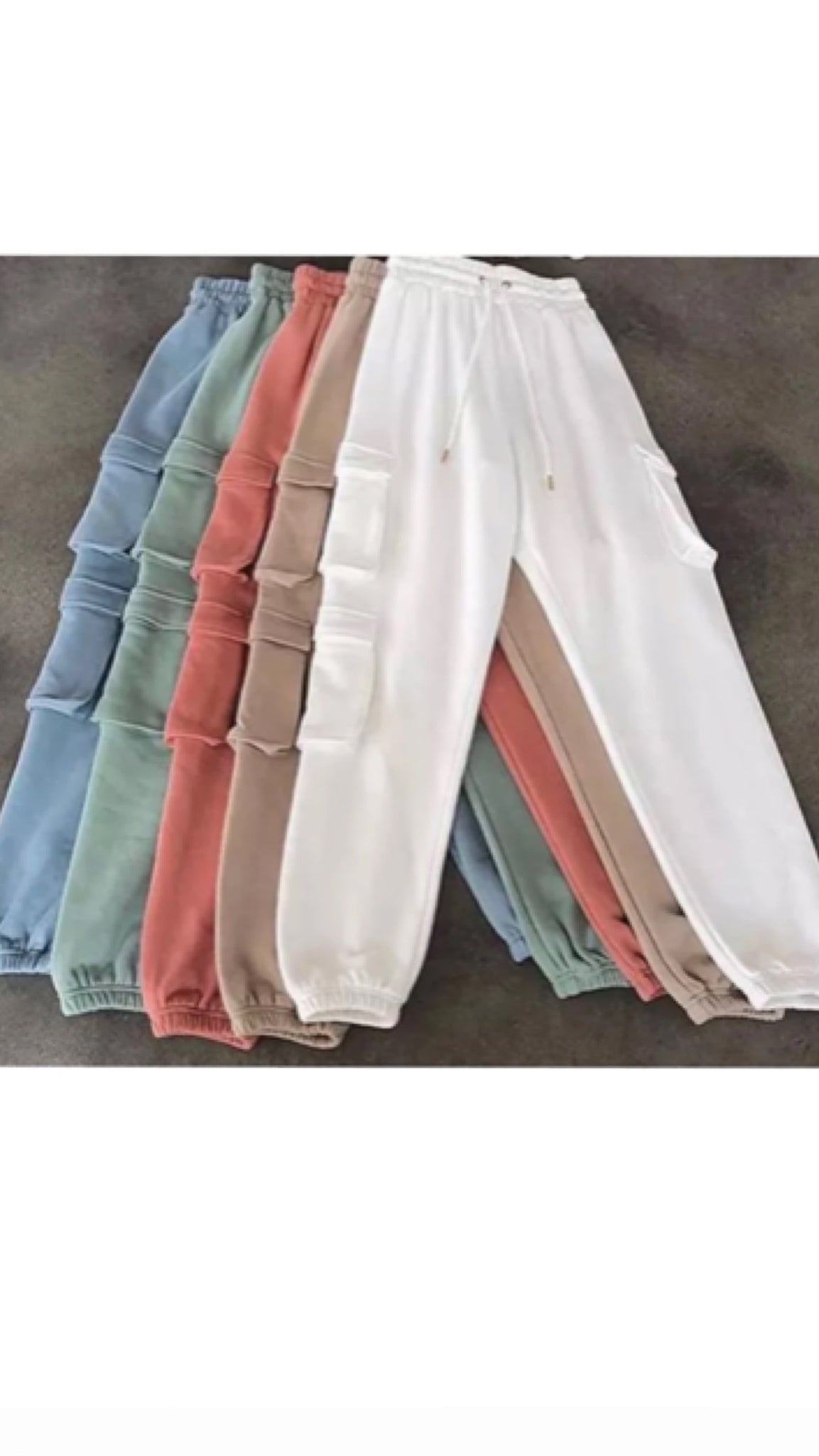 With elastic waist and 3 cargo pockets. Thick material. Fits true to size.